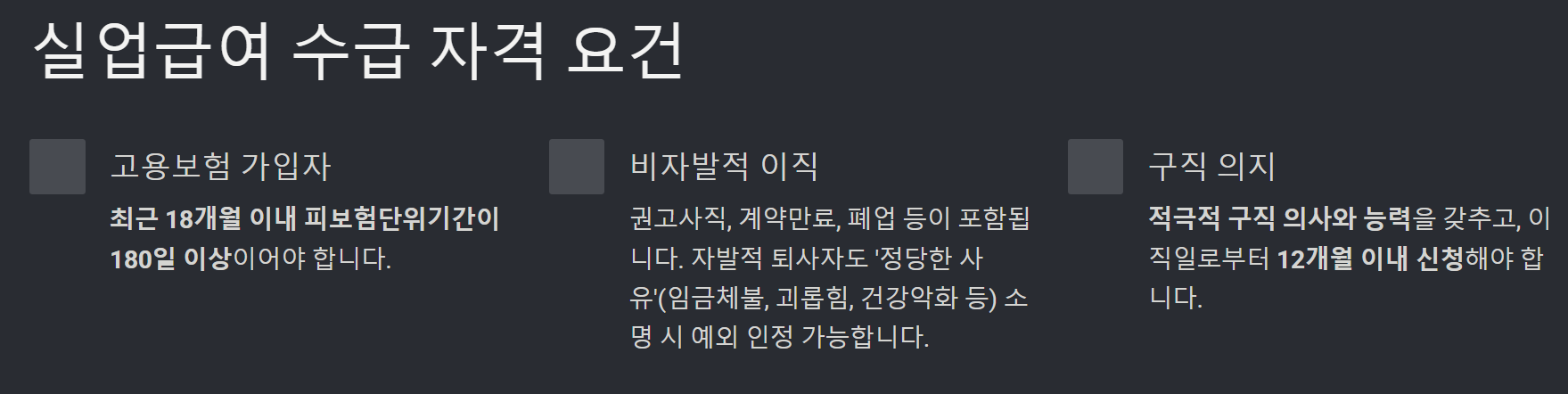 꼭 확인하세요! 아래 항목 중 모두 해당되어야 실업급여 신청방법 절차가 진행됩니다.