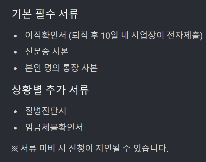 - (해당 시) 질병진단서, 임금체불 증명서 등 퇴사 사유 관련 서류