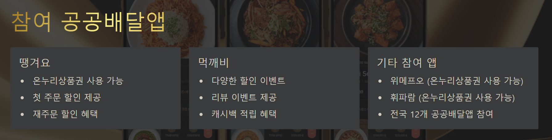 - 참여 앱: 전국 12개 공공배달앱 참여