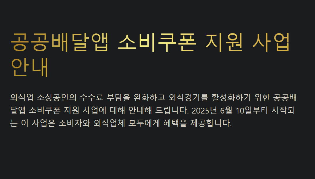 2025년 6월 10일부터 시행되는 이번 지원은 외식업 소상공인의 배달 수수료 부담을 줄이고,