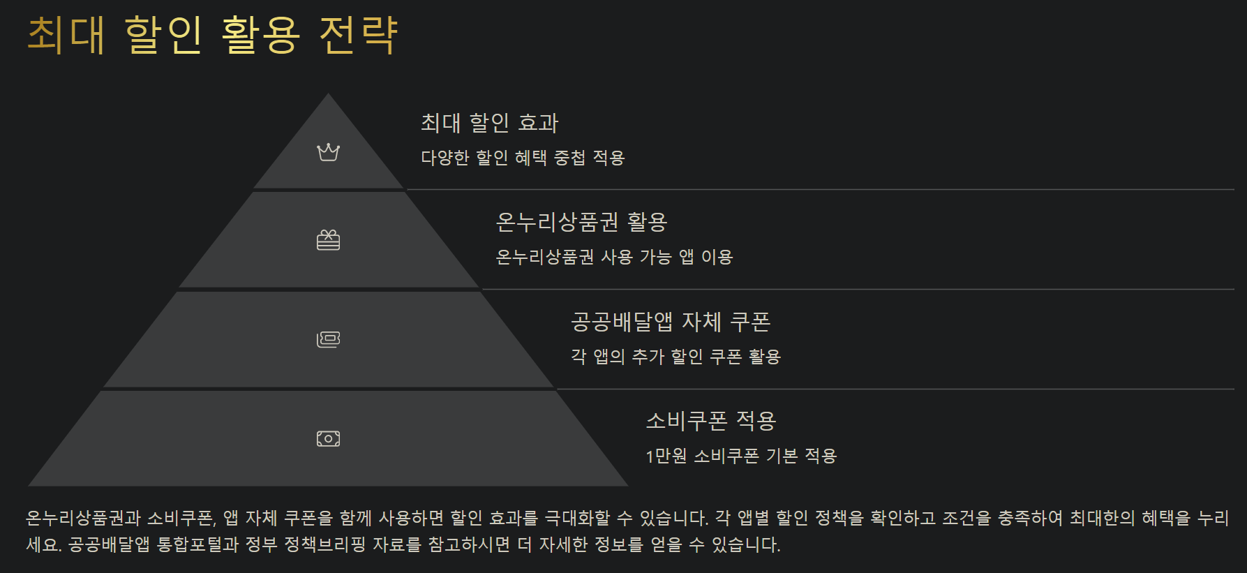 👉 최대한 활용하려면 온누리상품권 + 소비쿠폰 + 앱 자체 쿠폰 조합 사용 추천!